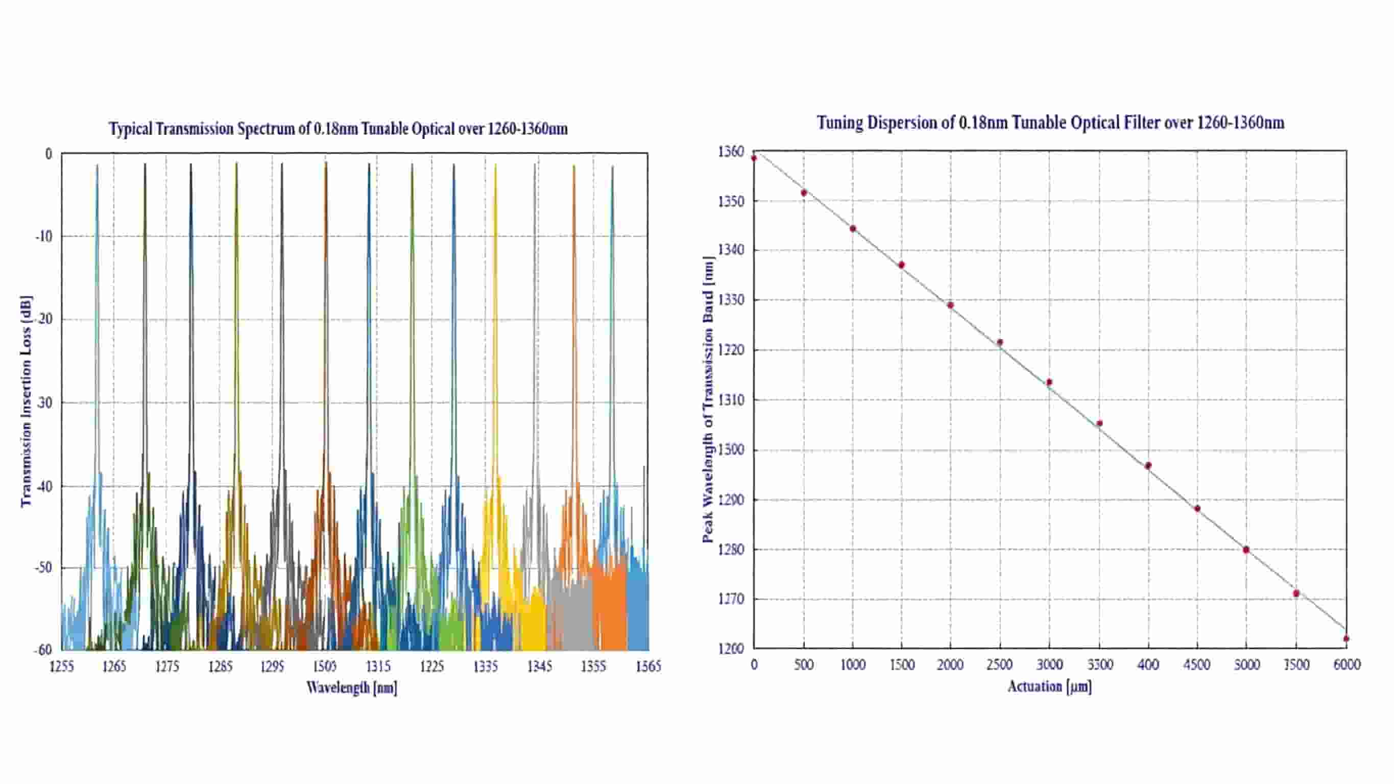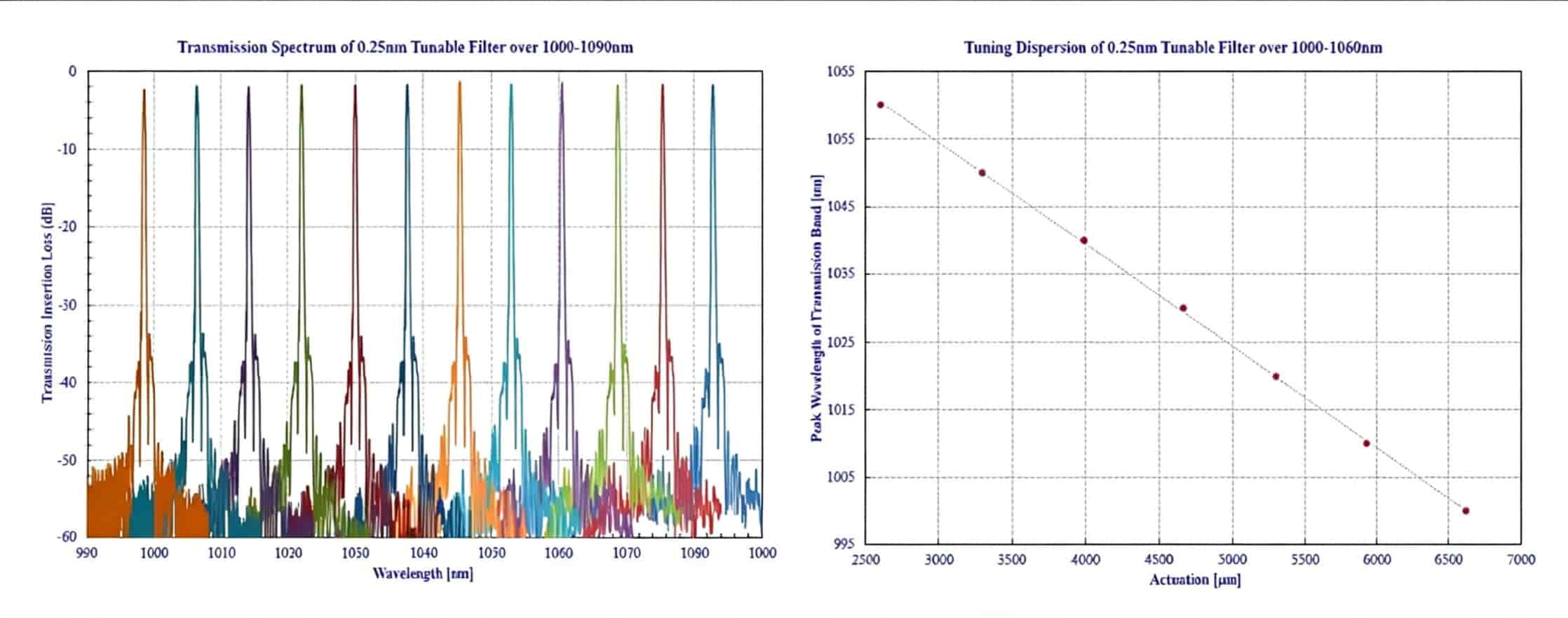 Through optical design, a Gaussian-shaped transmission spectrum is ultimately formed at the output, achieving narrowband filtering. We offer a variety of bandwidth and tuning range options. The operating wavelength range covers the 780-1000nm, X, O, S, C, and L bands, meeting the needs of diverse applications.