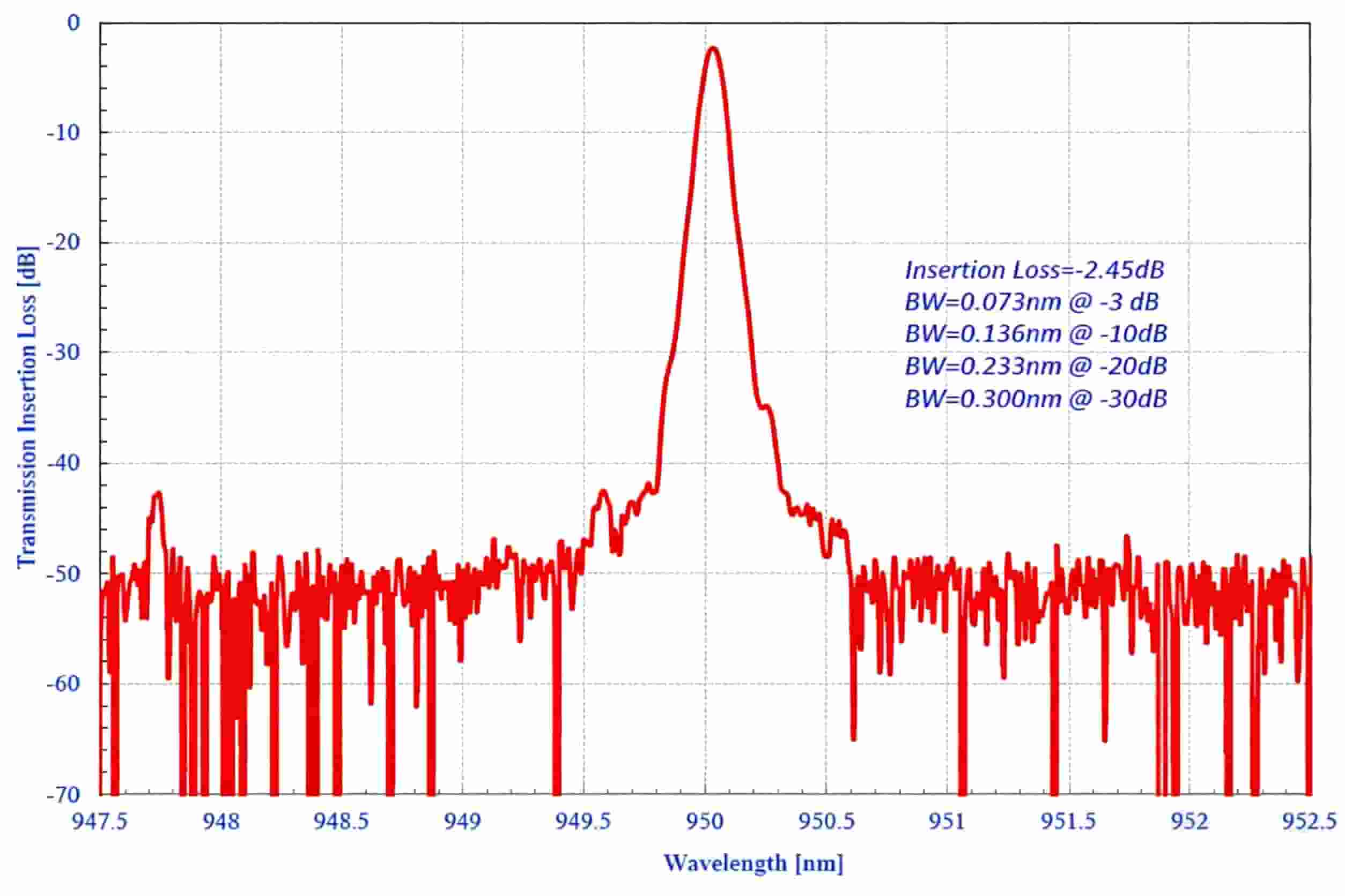 Typical Transmission Spectra of 0.07nm Tunable Filter Centred at 950nm