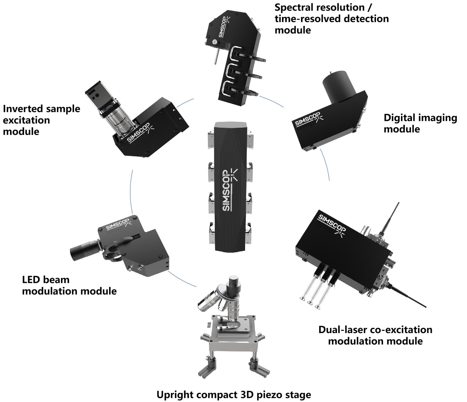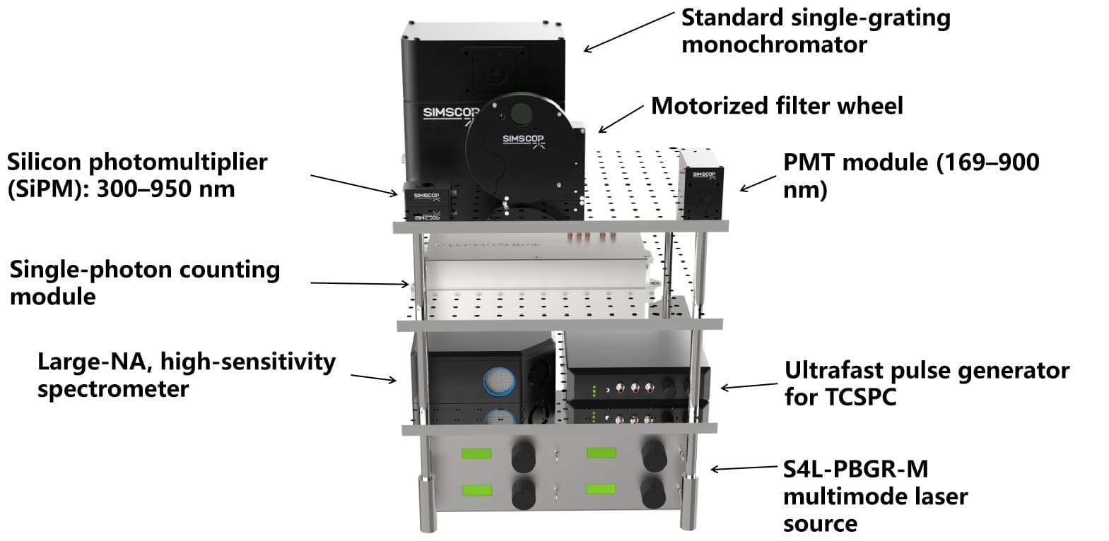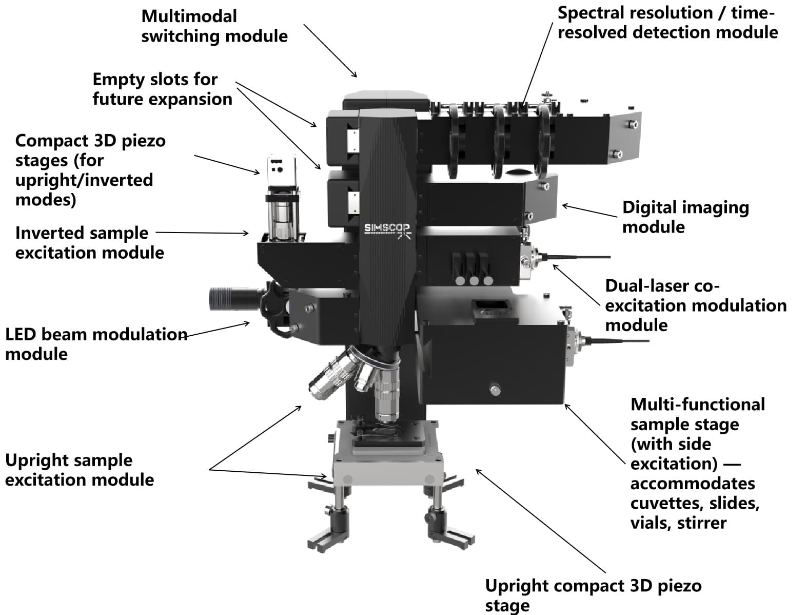 Multimodal Microscope by swapping functional modules, users can switch between excitation modes in seconds—enabling rapid adaptation to diverse sample types including thin films, solutions, cells, tissues, microfluidic chips, and single nanoparticles.For custom solutions, please contact us.